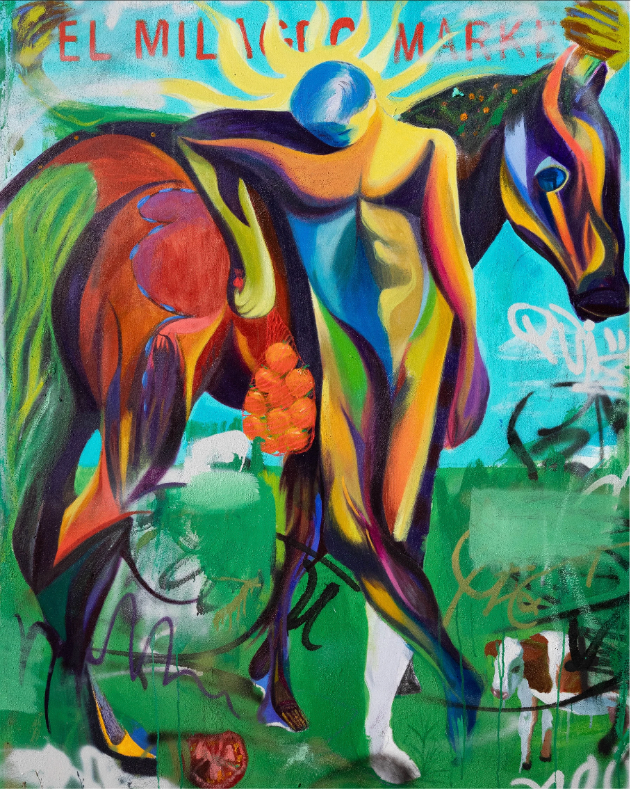 Kevin Sabo, born in 1992, is an American painter based in Richmond, Virginia. He earned his BFA in Studio Art from James Madison University. Sabo's work delves into themes of queer identity, satire, and existential revelations, often portrayed through expressive, character-driven figures. His paintings are known for their vibrant colors and dynamic compositions, reflecting a playful yet critical examination of societal norms.