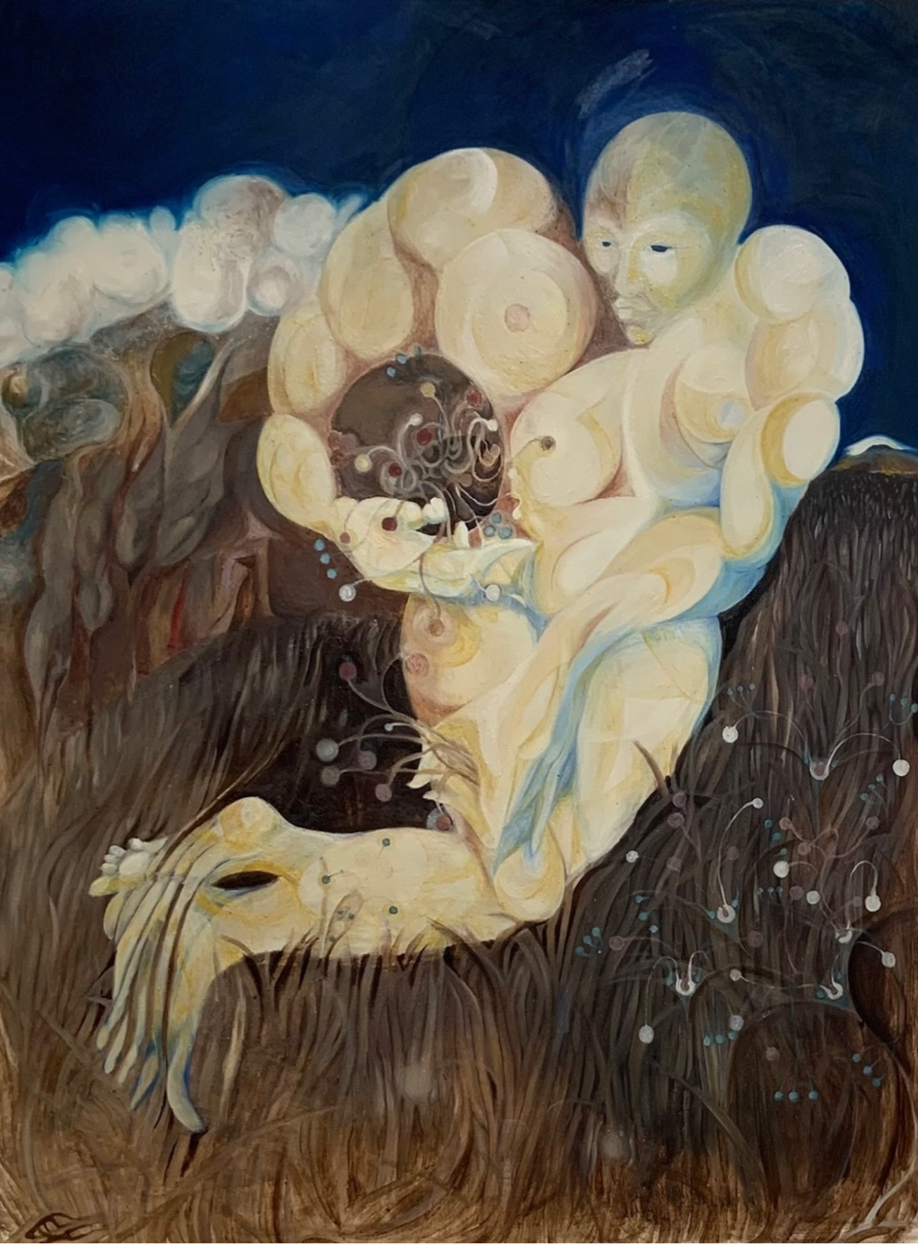 Cheyann Washington is a Belizean-American painter based in South Los Angeles. Her work delves into the essence of human behavior and its reflection in nature, creating a dialogue that bridges the organic and the human experience. Through various techniques, including drawing and painting, Washington encapsulates this relationship, often utilizing natural pigments and materials to deepen the connection between her art and the environment.